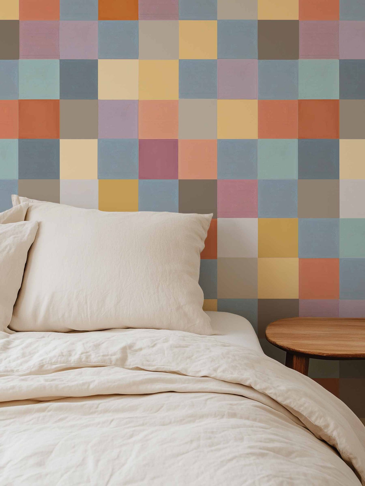 Featuring a gentle checked pattern in pastel blues, greens, yellows and peach tones, this wallpaper brings warmth and texture without overwhelming the room. Inspired by our Backcountry collection, it’s a versatile option for relaxed, lived-in interiors.