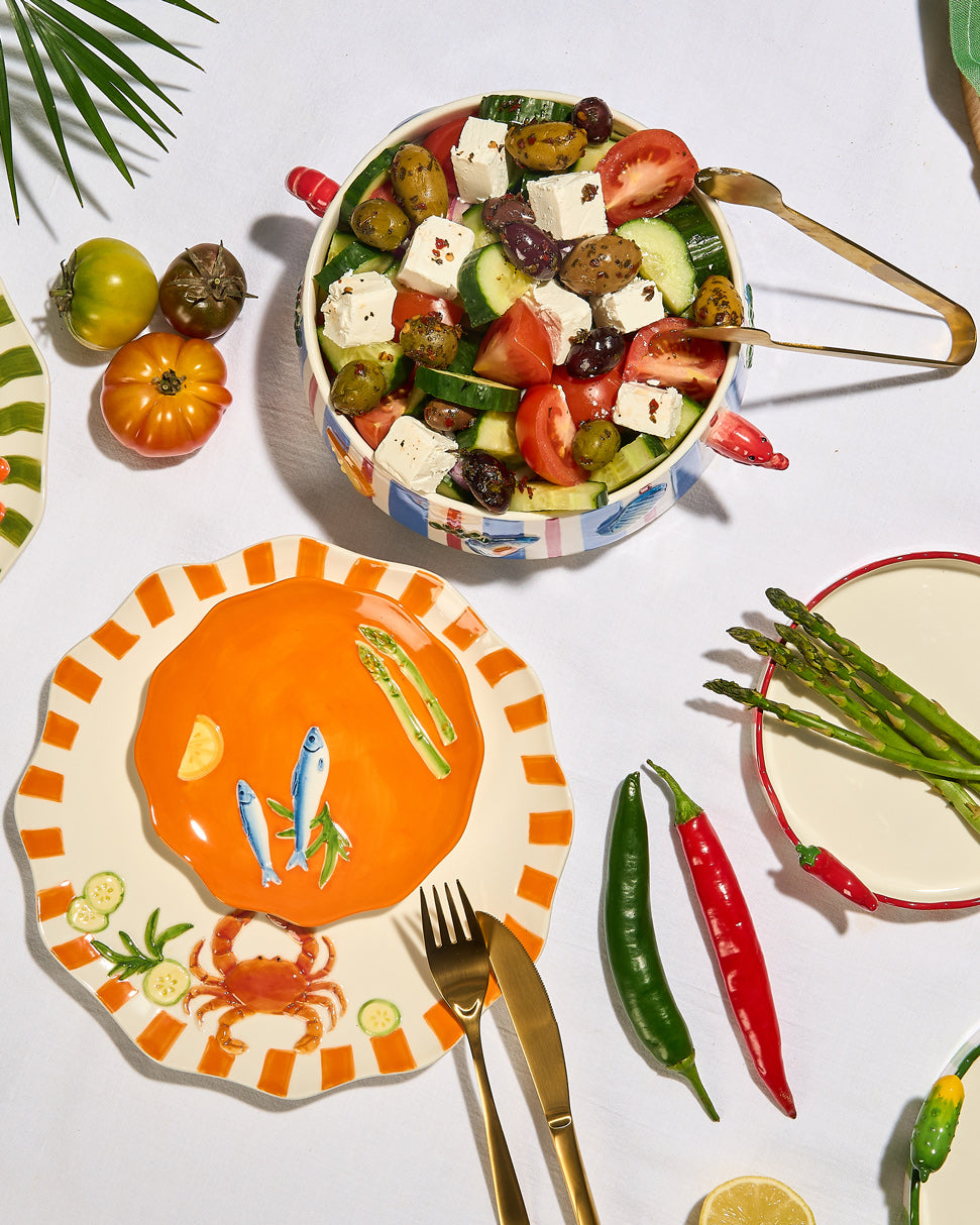 Ideal for serving tapas, seafood dishes, appetisers or small bites, the Seaview Sardines Plate brings a lively touch to summer lunches, beach house gatherings or relaxed dinners with friends. Its bold design pairs beautifully with other pieces from the Seaview collection to create a colourful, coastal-inspired table.