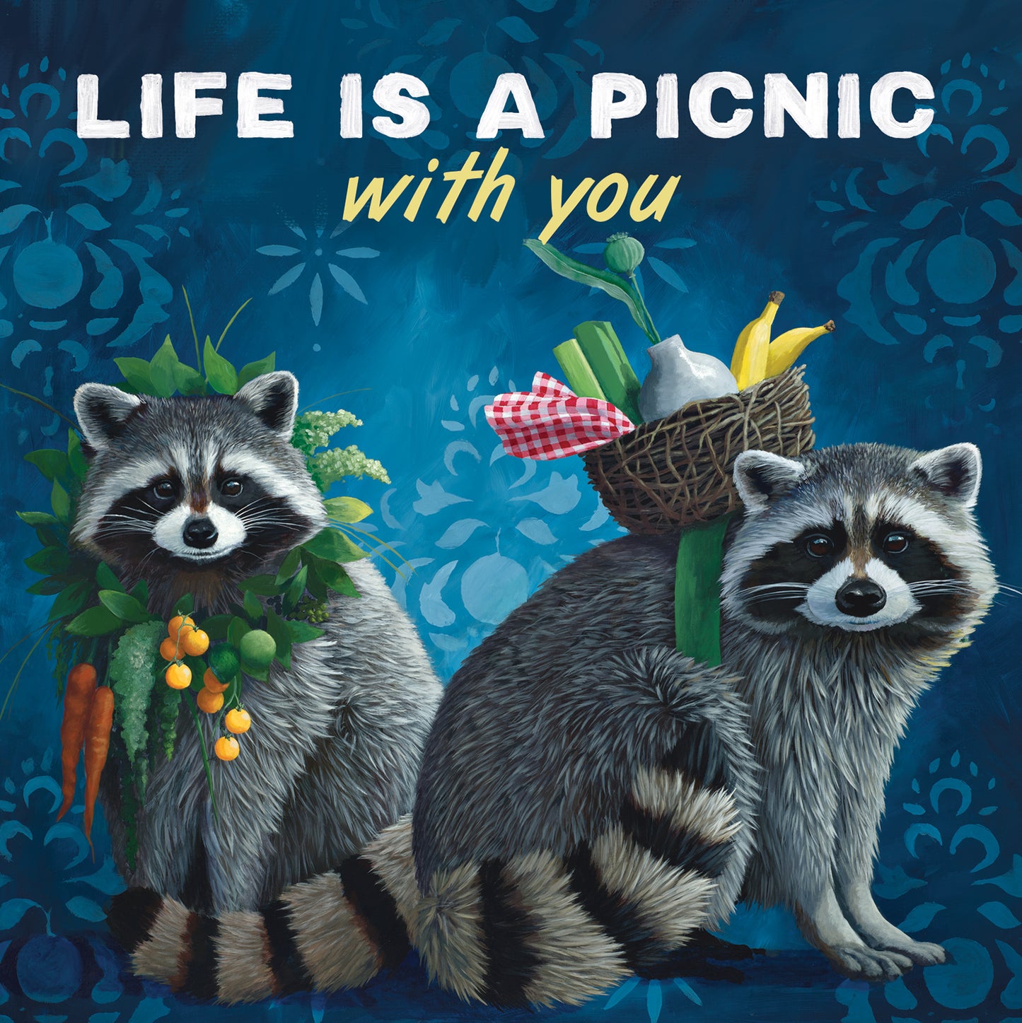 Greeting Card Picnic Raccoons